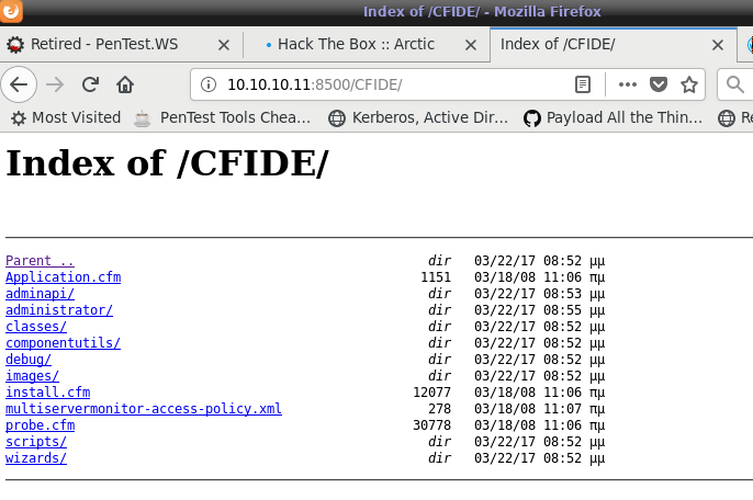 Ok… I guess it was a web server! We have a small directory listing. Let’s check out the first directory: /CFIDE/