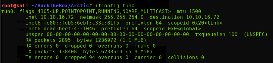 NOTE: tun0 is the interface for my VPN connection to the HacktheBox server.